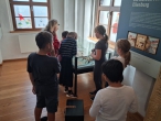 Am 3.9.2025 waren wir im Eilenburger Schulmuseum. Um 8:00 Uhr ging es schon los, wir sind mit dem Schwimmbus 20 Minuten hin gefahren. Wir duften noch 10 Minuten draußen im Garten spielen. Dann gings auch schon ins Museum rein. Die Klasse 4a hatte als erstes den Escaperoom, während die 4b zuerst die alte Klassenstunde machen durfte. Die Klassenstunde war sehr interessant berichtete die Klasse 4b und 4a. Es wurde auch dann gewechselt, also nach dem Escaperoom hatte die 4a dann die alte Klassenstunde. Die Klasse 4a und 4b waren aber getrennt. Die 4b hatte dann auch den Escaperoom. In der Klasse 4b und 4a wurden bei dem Escaperoom die Klassen in zwei Gruppen aufgeteilt. Die Lehrerin in der alten Klassenstunde hatte ein langen Rohrstock in der Hand. Wir mussten auf Schiefertafeln schreiben mit einem Griffel. Es gab da auch schon Bleistifte und Füller, aber der Füller hieß früher Füllfederhalter. Das fanden wir sehr interessant. Nun kommen wir auch schon zum Escaperoom. Da mussten wir Rätseln und man musste gute augen haben.